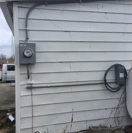 Gallery Gallery Before Pics of Electric Service Verona, KY After pics. New service-Verona, KY Barn Service Lighting Before & After Chandelier Replacement Exhaust Fan Installation for Commercial Kitchen Garage Service Hot Tub Installation Kitchen Remodel Multi Family Service New Rooftop Units - Bob Evans Residential Kitchen Transfer Switch For Generator Whole House Fan Installation